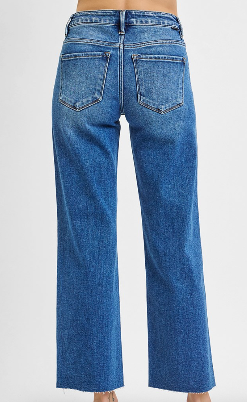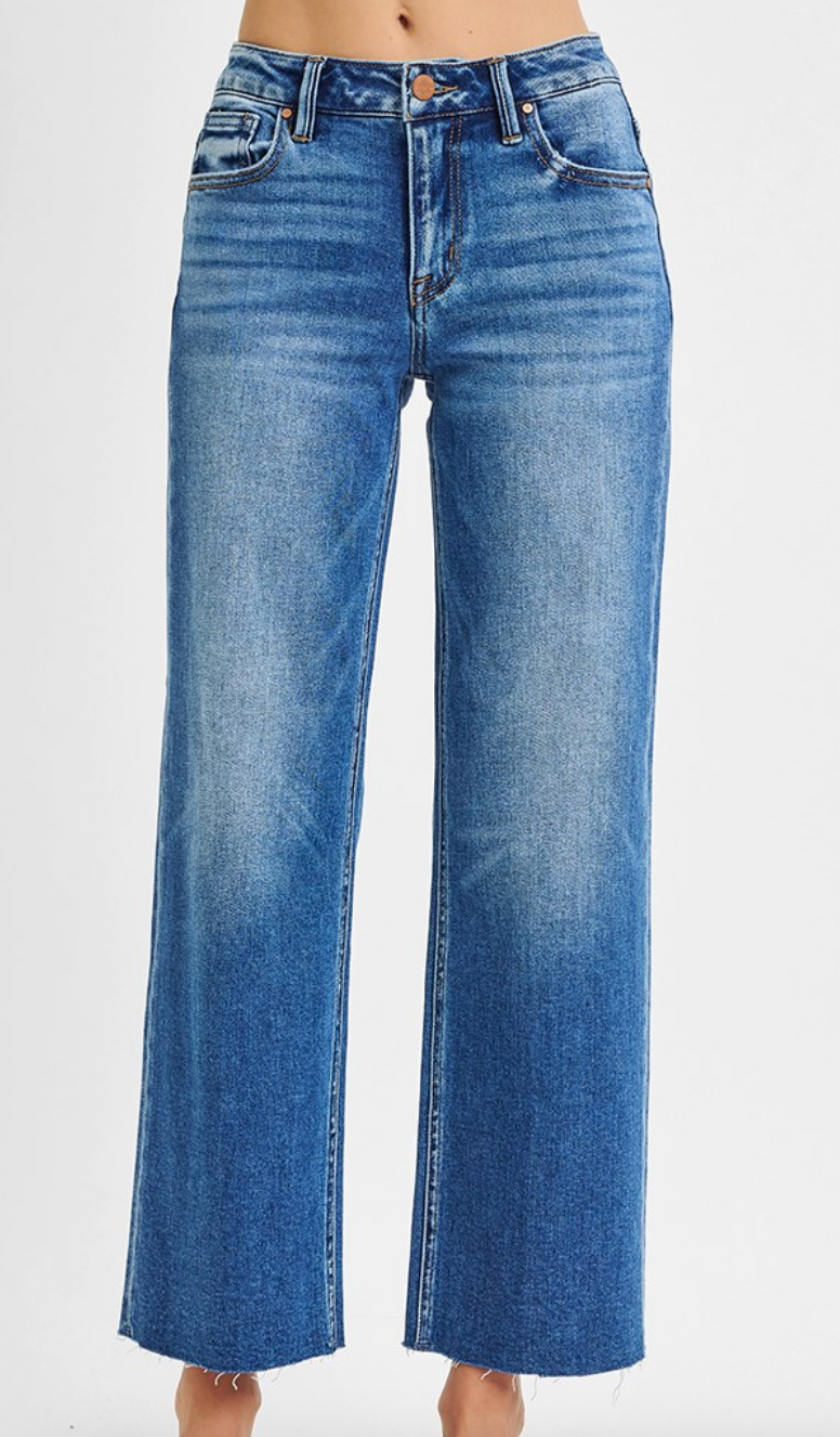 TUMMY CONTROL MID RISE CROP WIDE CLEAN CUT HEM JEANS