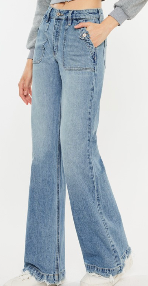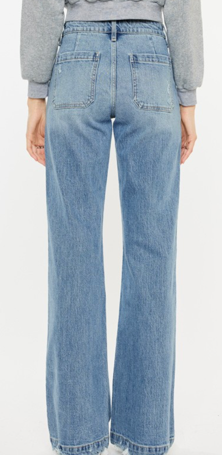 MEDIUM WASH COMFORT STRETCH 1" HEM PORKCHOP POCKET ZIPPER FLY RISE 10 12/" INSEAM 32" SIZE 5/26 99% COTTON, 1% SPANDEX