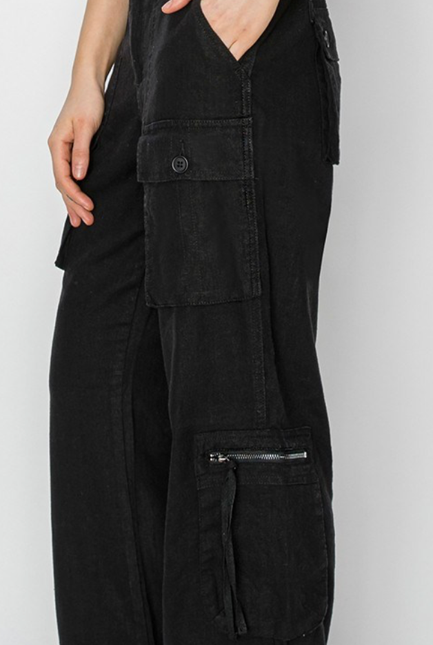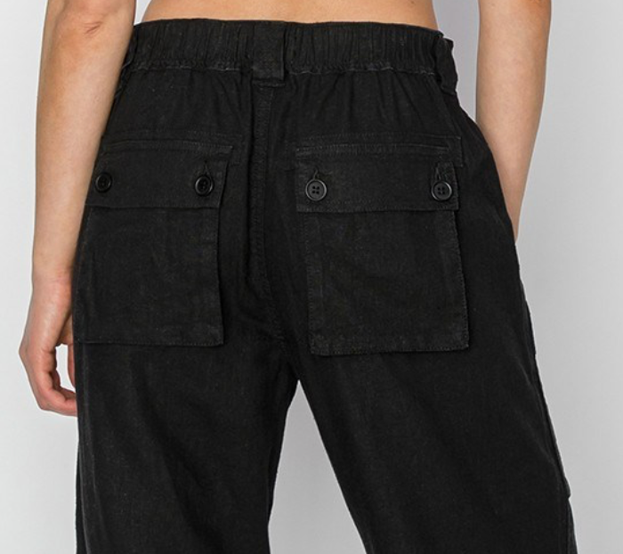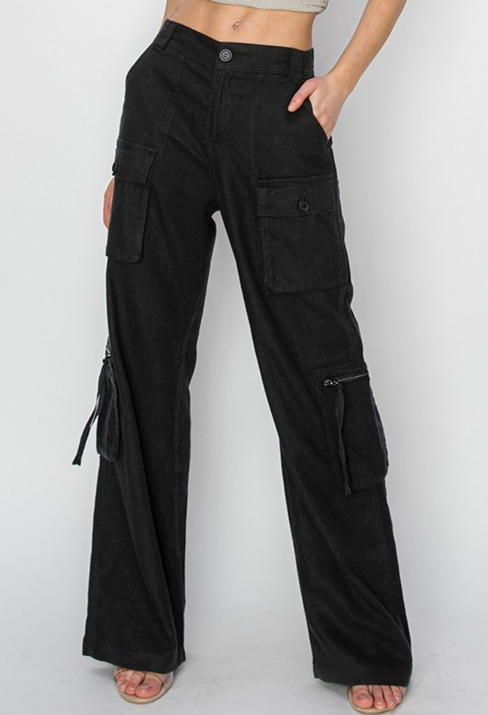 HIGH RISE STRAIGHT LINEN CARGO PANTS